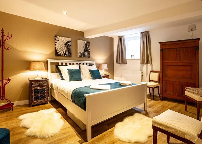 La Maison Bleue - Wellness - Spa se nachází 10-minutovou chůzí od Musée de la Lessive a 15-minutovou chůzí od Parc des Sept Heures. TV s plochou obrazovkou se satelitními kanály, jídelna a pohovka jsou k dispozici během vašeho pobytu v této vile.